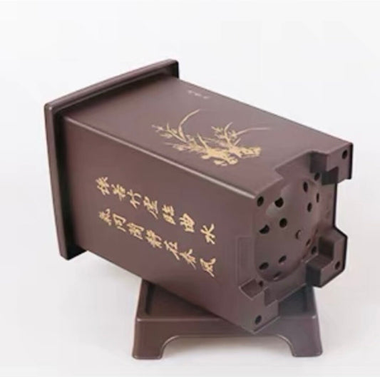 T3: Hand-made Pot by premier Yixing Purple Clay — three-legged pot with holes for root health, perfect for Neofinetia falcata/mini orchids